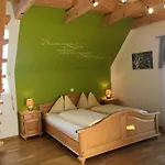 Hopfenhof Villa ligt op 25 minuten wandelafstand van Kriegerdenkmal en verwelkomt zijn gasten om wandelen, fietsen en pingpong te proberen. De vakantieboerderij verwacht gasten op een terras met een eettafel.